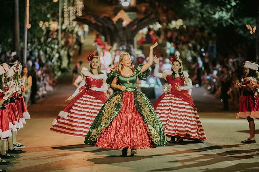 Quizás uno de los atractivos que más llama la atención dentro de esta fiesta, es su espectacular Desfile de Carrozas que con más de 20 carros alegóricos y más de 600 personas en escena, recrean los hechos que rodearon el nacimiento de Jesús. También hay un espacio para la fantasía de los más pequeños con la alegoría de Papá Noel, y su proceso de adaptación a su vida en Misiones.