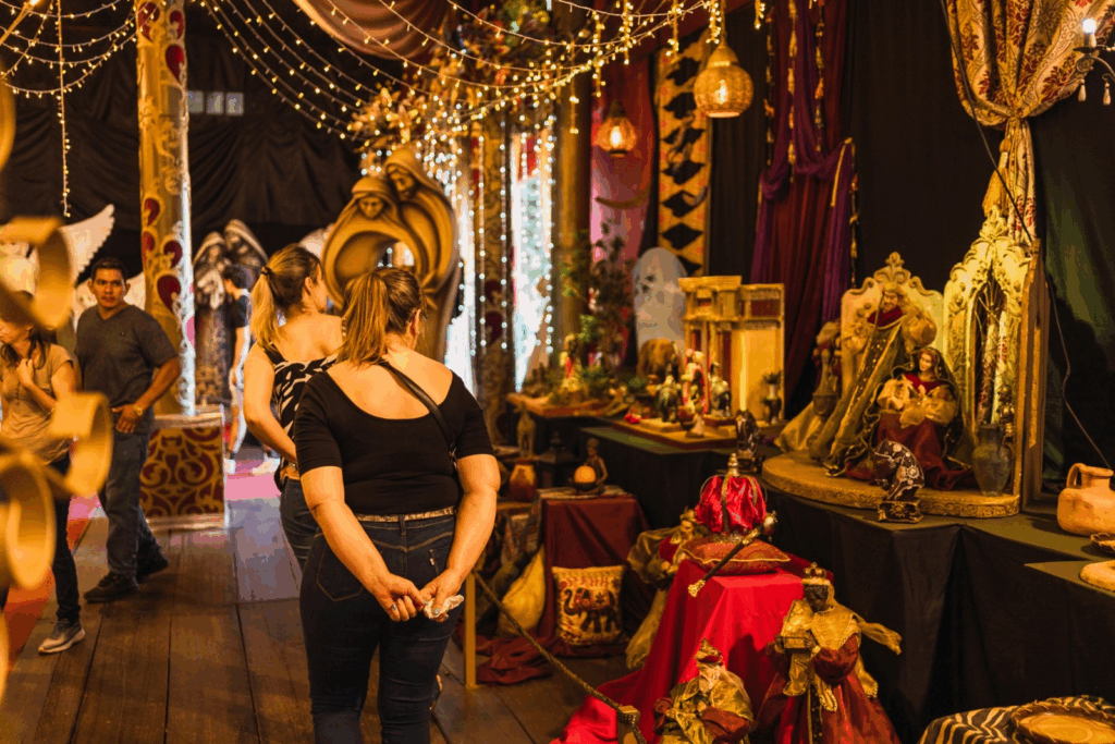 Saliendo de ese módulo, uno de los atractivos que más llama la atención en esta fiesta es una “Muestra de pesebres del mundo”, donde se pueden apreciar escenas del nacimiento de Jesús recreadas en los diferentes continentes. Esta exposición es única en su tipo en Sudamérica, y permitirá a los visitantes repasar la historia del nacimiento de Jesús a través de múltiples culturas. Pesebres asiáticos, africanos, europeos y americanos forman parte de esta gran colección, cuyas piezas fueron fabricadas en los talleres de la fiesta o adquiridas en el país y en el exterior.