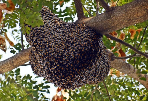 Las abejas en un enjambre suelen ser muy tranquilas y presentan poco peligro. Se vuelven agresivas si se las perturba o se rocía con agua, hay que dejarlas solas y esperar a que un apicultor se las lleve.