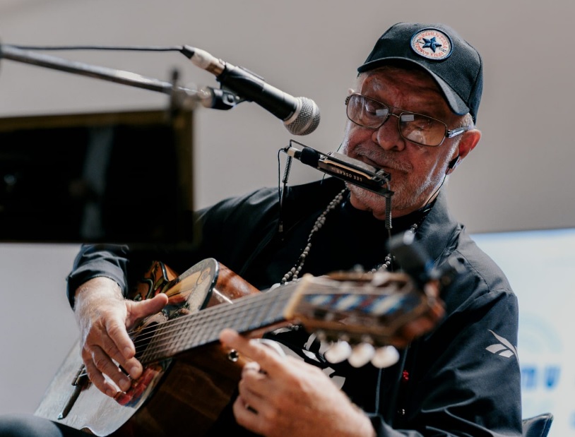 Al cierre del acto, el cantautor ofreció un emotivo repertorio que incluyó temas emblemáticos como “La memoria”, “Solo le pido a Dios”, “El desembarco” y, para culminar, la resonante “Como la cigarra”, que pertenece a María Elena Walsh