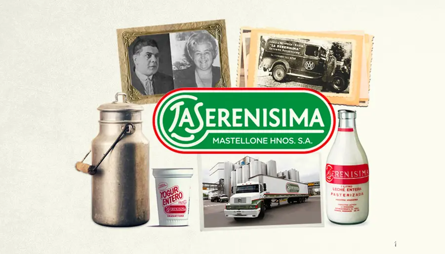 Mastellone Hermanos fue fundada en 1929 por Antonino Mastellone y Teresa Aiello, por lo que en 2025 cumplió 96 años de actividad. Con La Serenísima como marca insignia, desarrolló un extenso portafolio de productos que incluye leche, dulce de leche, ricotta, quesos, manteca, crema, yogures, postres, cremas y otros alimentos.