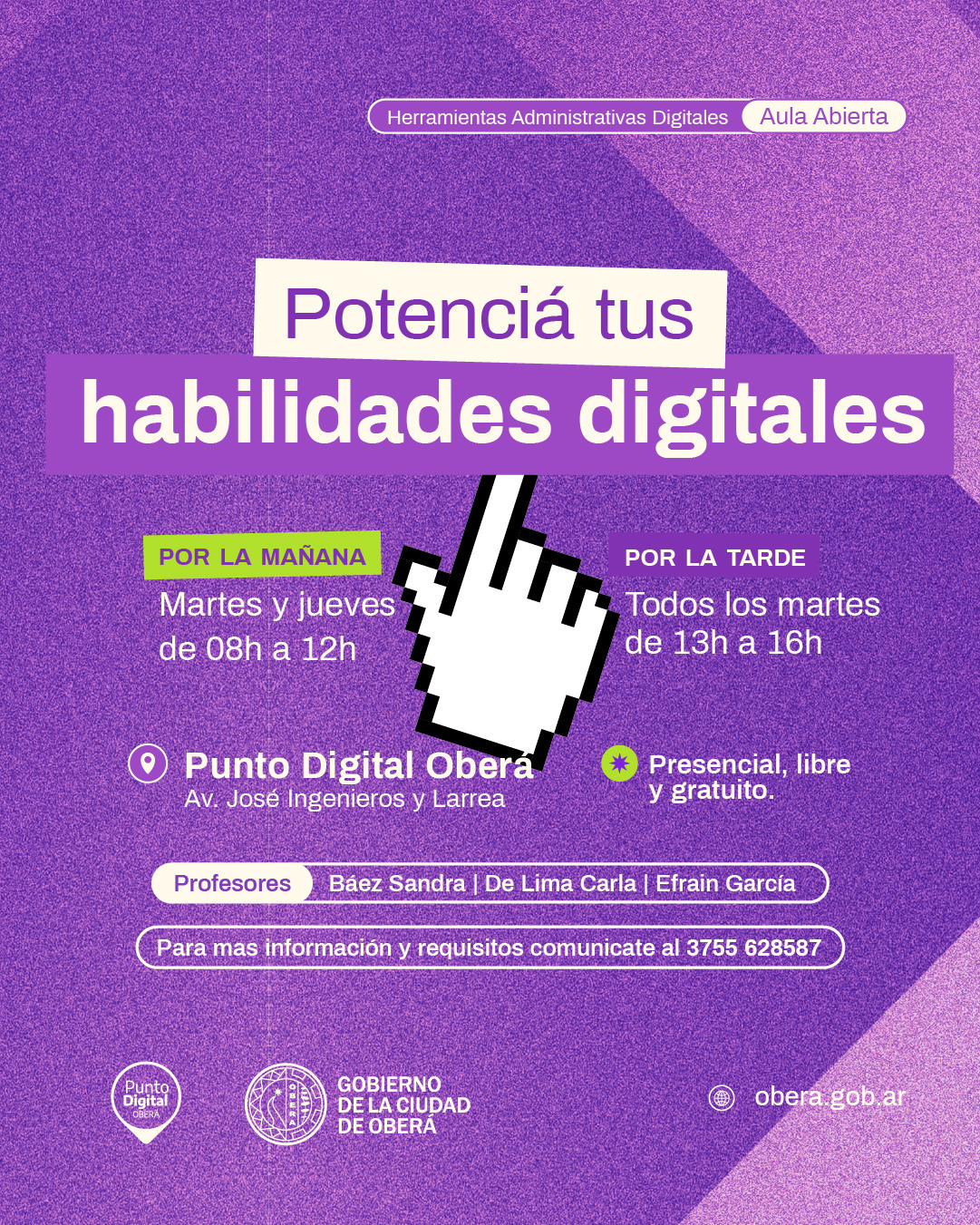 El Gobierno de la Ciudad de Oberá, a través del Departamento de Capacitación y el Punto Digital, presenta una nueva modalidad de formación permanente en temáticas referidas a la informática y al mundo digital.
