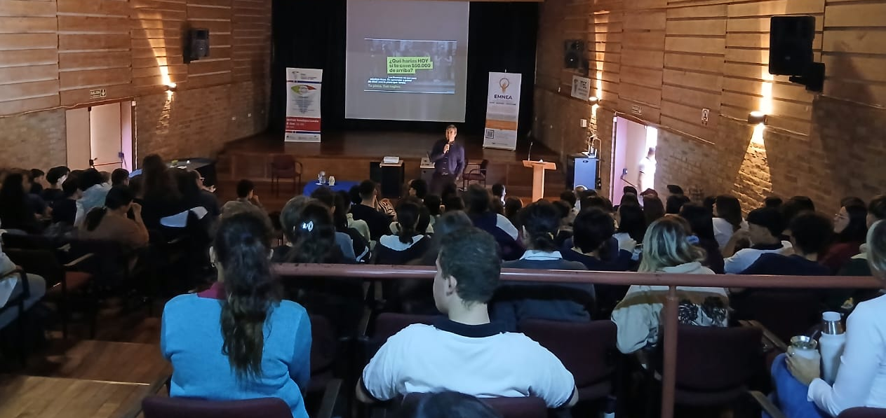 Más de 150 alumnos de los últimos años del ITEC, la EPET N.º 9 y la Escuela Normal Superior N.º 1, junto a vecinos interesados, participaron de la disertación a cargo del Mg. Marcelo Ruzak, especialista en administración de ingresos, ahorro y toma de decisiones financieras.