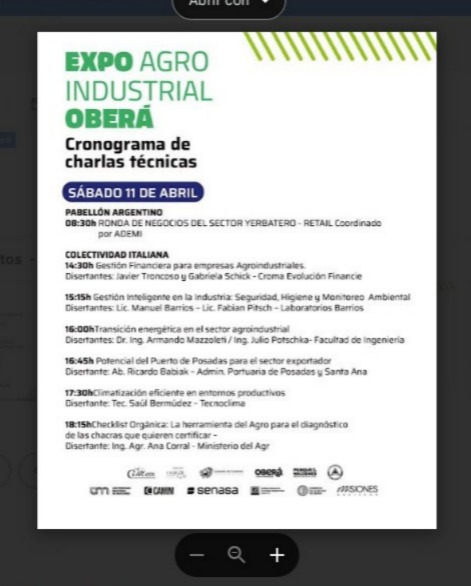 La capital del Monte se prepara para vivir la gran cita productiva con la realización de la Exposición Agroindustrial Oberá, un proyecto largamente esperado que reunirá a industrias, productores, empresas de servicios y público en general durante el próximo fin de semana. Agenda completa para sábado y domingo donde se destaca la ronda de negocios para la actividad yerbatera