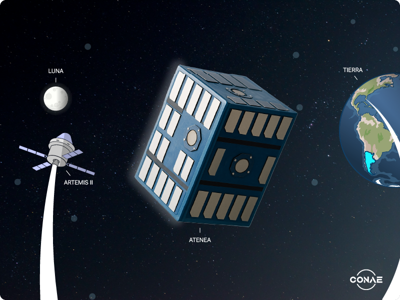 Una de las misiones de Atenea será medir los niveles de radiación desde órbita baja hasta el espacio profundo y lograr enviar estas lecturas a unos 70.000 kilómetros de distancia hasta las estaciones terrenas que la CONAE tiene en Tierra del Fuego y en Córdoba.