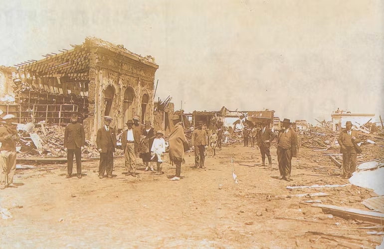 Cuerpos inertes entre los escombros, familias enteras desaparecidas y hasta cuerpos decapitados en la copa de los árboles era el panorama que se vivía hace casi cien años.