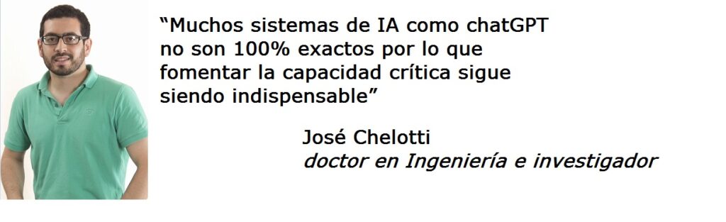 Respecto de la precisión, puso sus reparos. “Aún siendo profesor en materias afines y conociendo como funciona esta tecnología creo que un primer paso es continuar nuestra formación en estas temáticas. Muchos sistemas de IA como chatGPT no son 100% exactos por lo que fomentar la capacidad crítica sigue siendo indispensable. Es algo muy incipiente, de mucha actualidad y sobre todo de mucho futuro”.