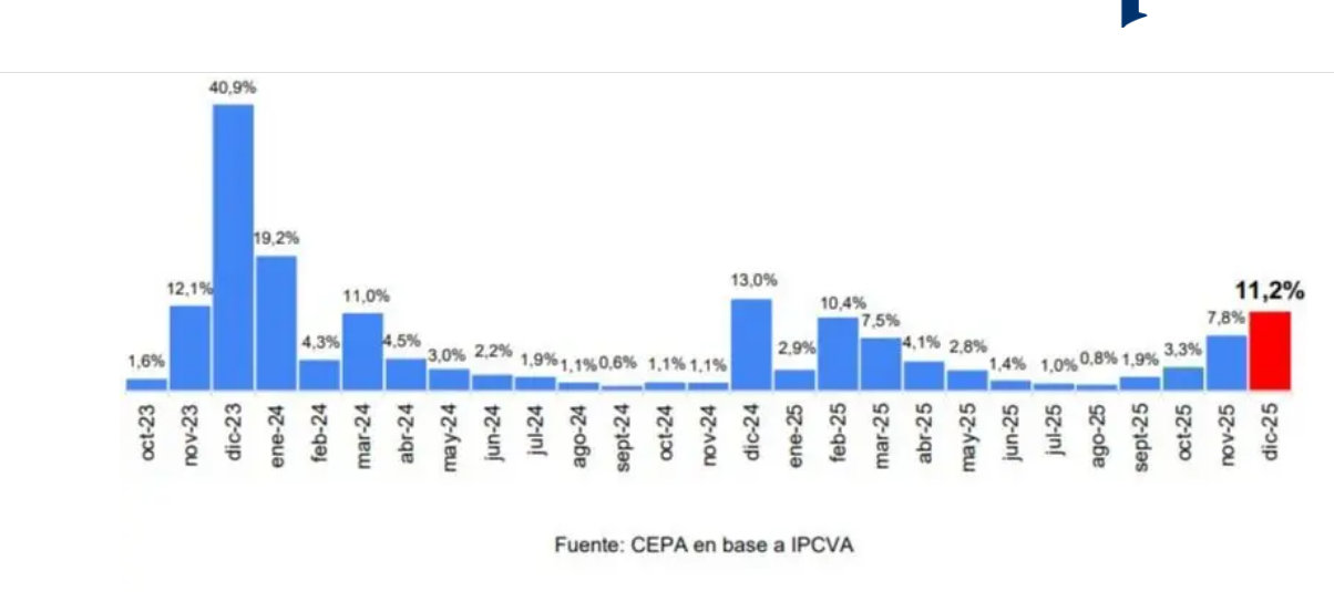 El precio de la carne vacuna volvió a dispararse en diciembre, y marcó la mayor suba de todo el año pasado. Los distintos cortes registraron un aumento promedio mensual del 11,2%, una suba que no solo superó ampliamente la inflación estimada para el mes, sino que consolidó una dinámica que se arrastra desde comienzos del año, según el último informe del Observatorio de Precios del CEPA. En el año la suba de precios superó el 70%, de acuerdo con el relevamiento del Instituto de Promoción de Carne Vacuna Argentina (IPCVA). En el mismo período la inflación global estuvo por debajo de la mitad de ese registro. Hay razones como que los ganaderos decidieron retener hacienda y no enviarla a faena porque las lluvias hicieron salir buenas pasturas y eso asegura animales más gordos (de modo gratuito). Y además se ha estado exportando más. Y, para más, la gente igual siguió comprando pese a las subas: el argentino ama el asadito del fin de semana y las comidas con mucha carne.
