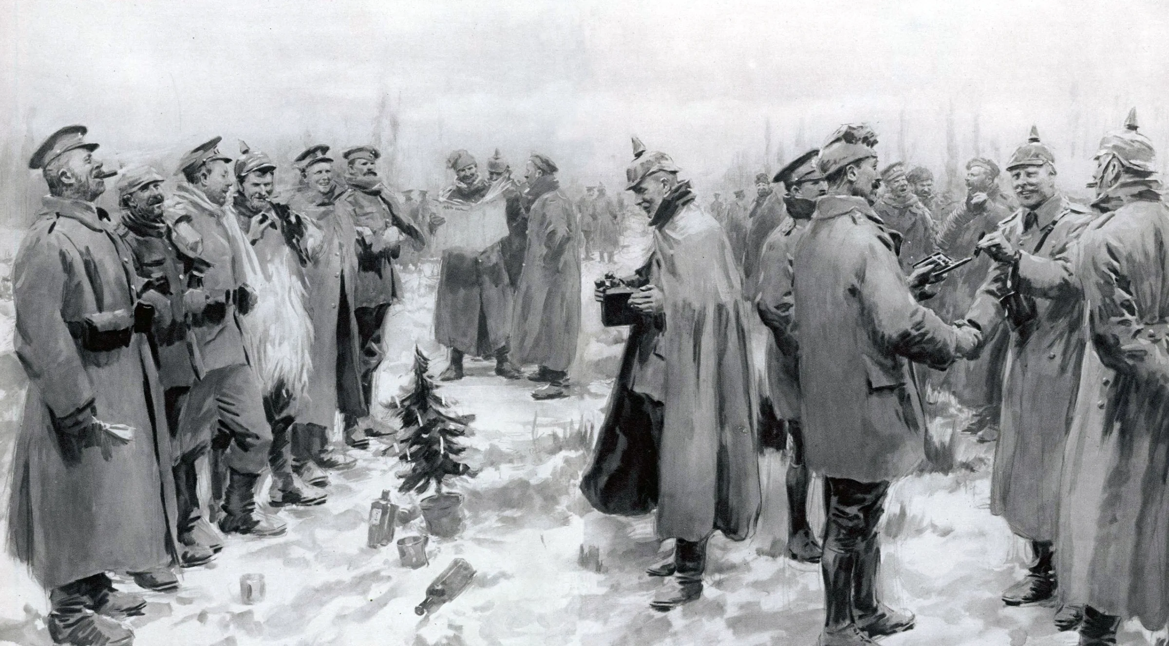 En plena Primera Guerra Mundial, alemanes y británicos dejaron las armas en la Nochebuena de 1914 para cantar de forma conjunta este villancico, lo que dio paso a un momento icónico de fraternidad inspirado en el nacimiento del Hijo de Dios. Intercambiaron algo de comida y tabaco y procuraron sepultar a los muertos en tierra de nadie, entre las trincheras de ambos grupos combatientes.