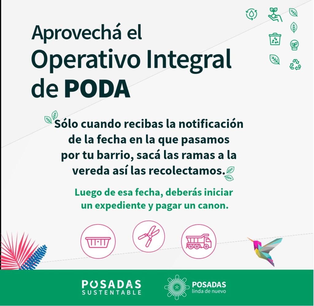 Además, destacó que la planificación del operativo puede consultarse a través de un mapa interactivo disponible en la web oficial posadas.gov.ar/poda, donde se informa el avance por zonas. “También avisamos con anticipación en cada barrio, por lo que es importante que los vecinos estén conectados con sus comisiones vecinales”, señaló.