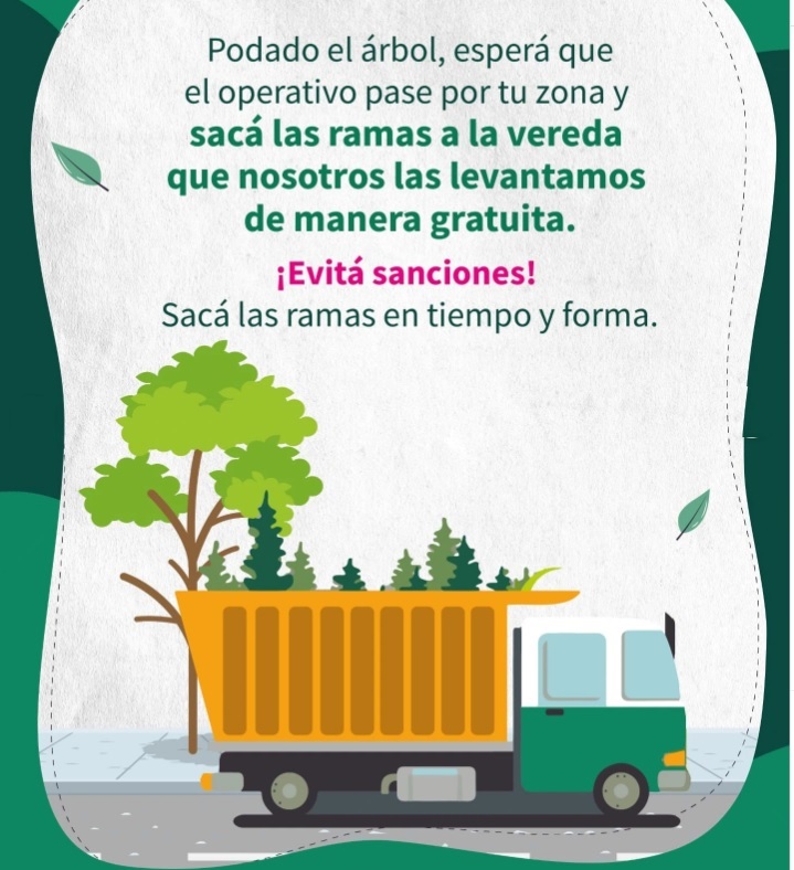 5- Poda Fuera de la Planificación: el vecino frentista no puede realizar la poda del árbol que se encuentra en la vereda sin haber realizado previamente un expediente de poda, y los únicos que pueden o que están habilitados para realizar esa poda son los podadores municipales, o los podadores urbanos artesanales que fueron capacitados previamente, en cambio el vecino puede realizar la poda sin expediente del árbol que se encuentra dentro de su terreno, pero no debe depositar las ramas o residuos verdes en la vereda o vía pública (boulevares, terrenos baldíos y/o alrededor de contenedores de residuos domiciliarios), en este caso las ramas deben ser depositadas en los puntos limpios habilitados (Mapa Puntos Limpios) en la ciudad llevando por sus propios medios (flete particular o camioneta propia).