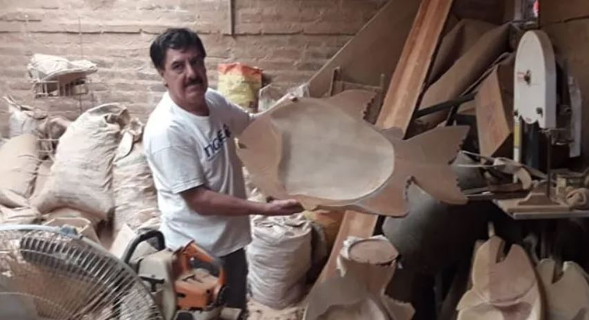 Le hago una breve reseña de ‘Artesanías Pica Pau’ que en diciembre 2022 cumplió diez años. Fueron difíciles al comienzo cómo todo emprendimiento. Siete años trabajé solo. Hoy hace ese tiempo que me acompañan mis hijos Hugo y Daniel. Tenemos dos talleres uno en Oberá dónde trabajo con un chico de secretario (misionerismo que significa ‘ayudante’) y en Santa Rita Misiones, allí lo hacen mis dos hijos y cuatro muchachos de la zona. Se vende toda la producción en distintas provincias y ciudades del país, Corrientes, Entre Ríos, Reconquista Santa Fe, Buenos Aires y últimamente Bariloche. Podría decir que el caballito de batalla, son las bandejas y porta llaves con forma de pescados (dorados, pacúes, bogas, surubíes y truchas).