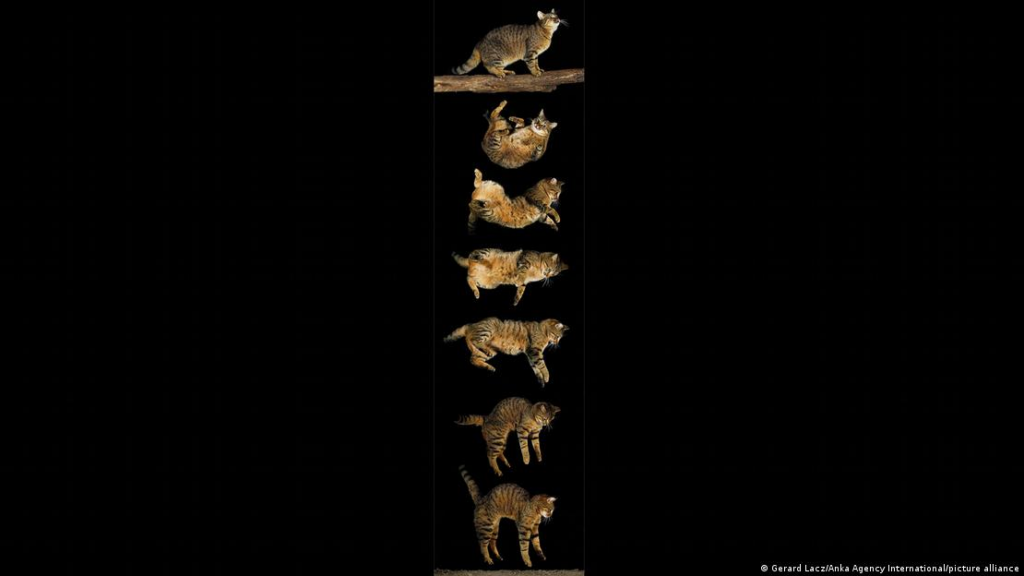 El llamado «problema del gato que cae» figura en los libros de física desde, al menos, el siglo XVIII. En 1894, el fisiólogo francés Étienne-Jules Marey lo convirtió en un caso célebre al capturarlo con una de las primeras cámaras de alta velocidad. Sus secuencias fotográficas, publicadas en Nature, mostraban a un gato que iniciaba la caída sin rotación aparente y que, de algún modo, lograba reorientarse antes de tocar el suelo.