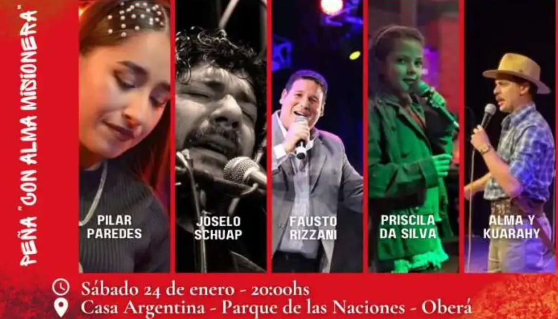 La peña se realizará el sabado 24 de enero, a partir de las 20, en la Casa Argentina, ubicada en el Parque de las Naciones de Oberá, un espacio emblemático para la cultura y la identidad misionera.