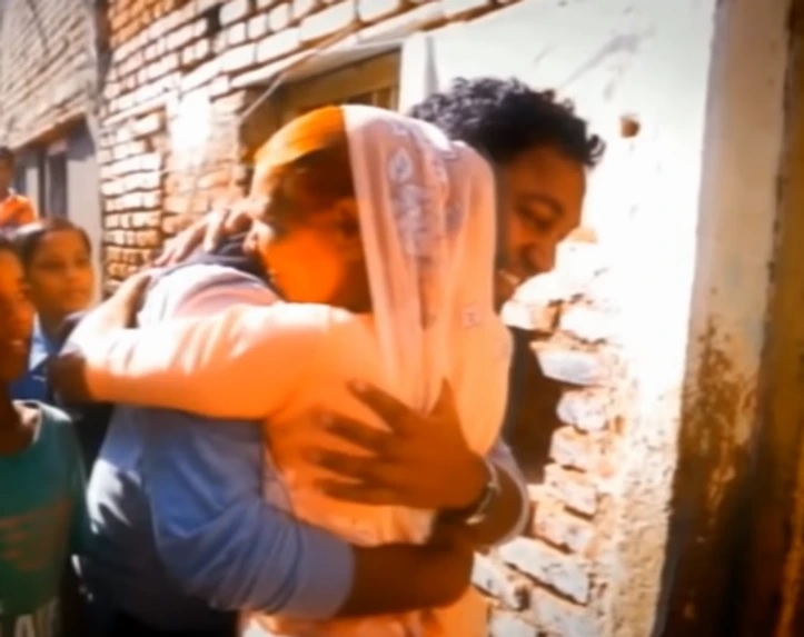 Logró comunicarse con uno de los aldeanos que lo llevó hasta una anciana que primero lo miró, luego lo reconoció, y después, en estado de shock, lo acarició y lo abrazó.