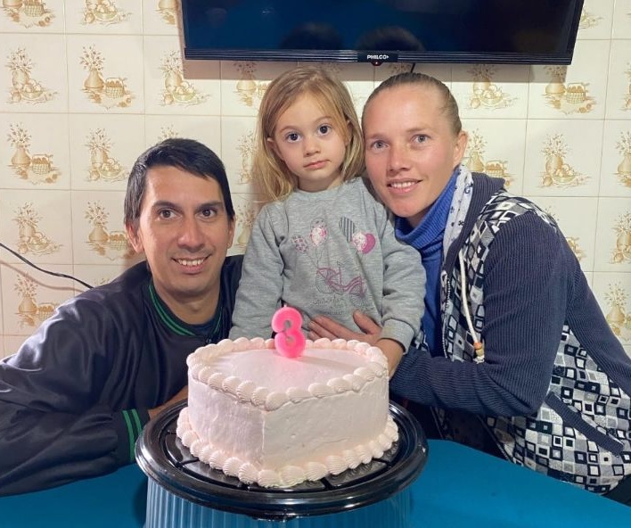 Allí están los tres, junto a la hija que tienen en común. Y, si. Es una polaquita igual que su madre. Pero con la mirada chispeante de su papá.